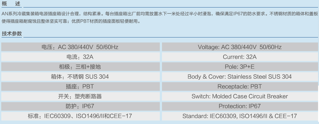 AN型系列冷藏集裝箱電源插座箱不帶監視插座