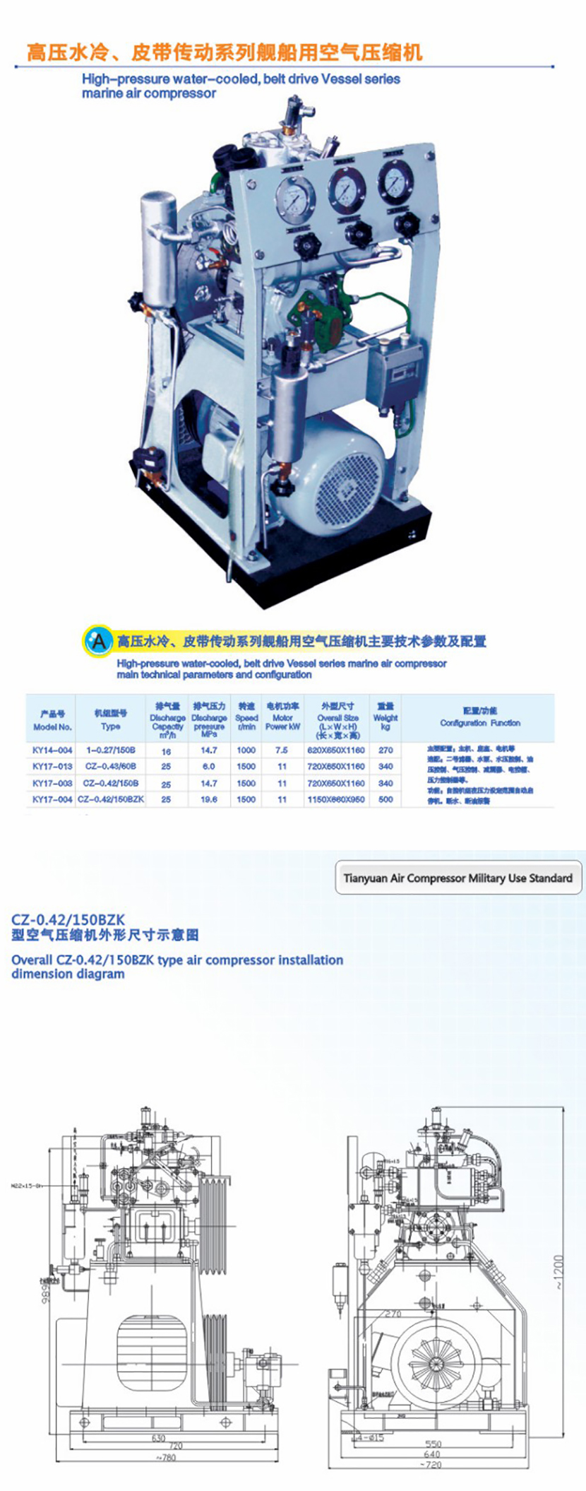 艦船用高壓水冷&皮帶傳動空氣壓縮機