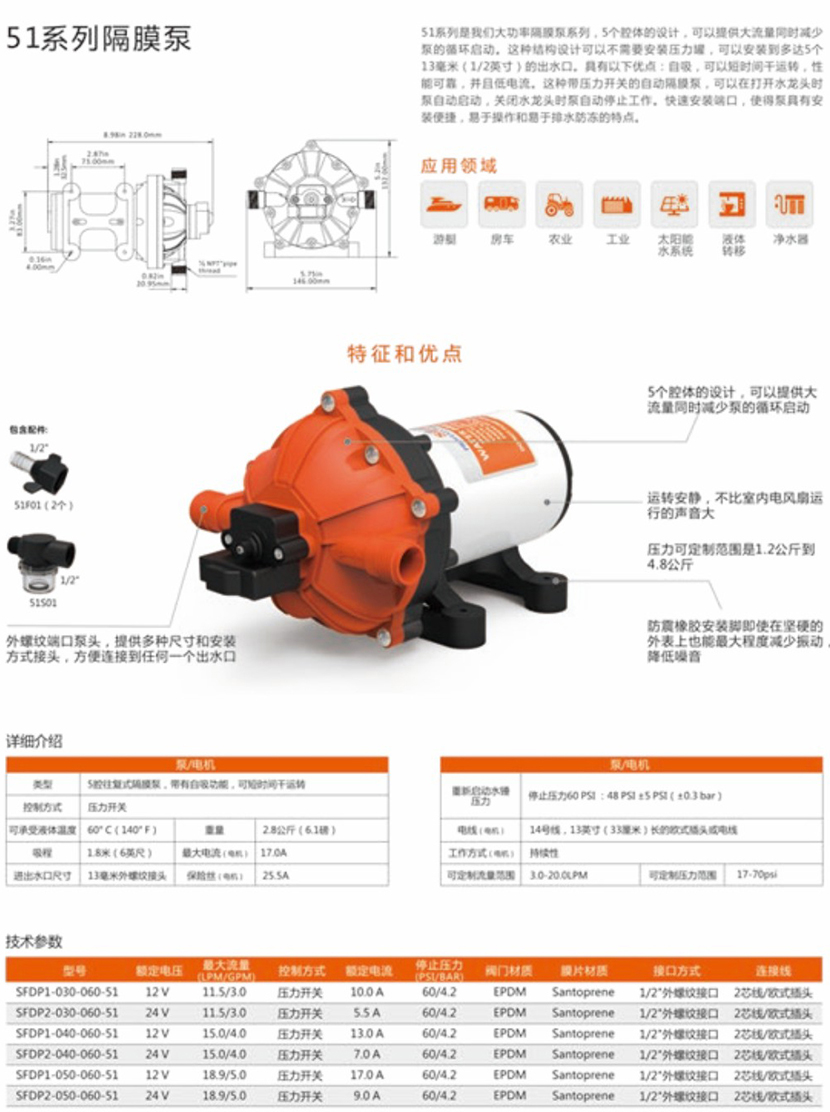 流量: 11.5l/min 額定電壓: 12V