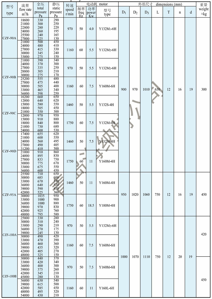 | 全壓: | 370Pa | 電機功率: | 5.5kW |