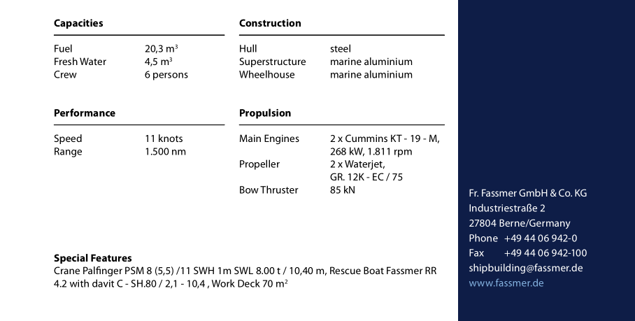 | 續(xù)航力: | 1.500nm | 發(fā)動機功率: | 2×268kW |