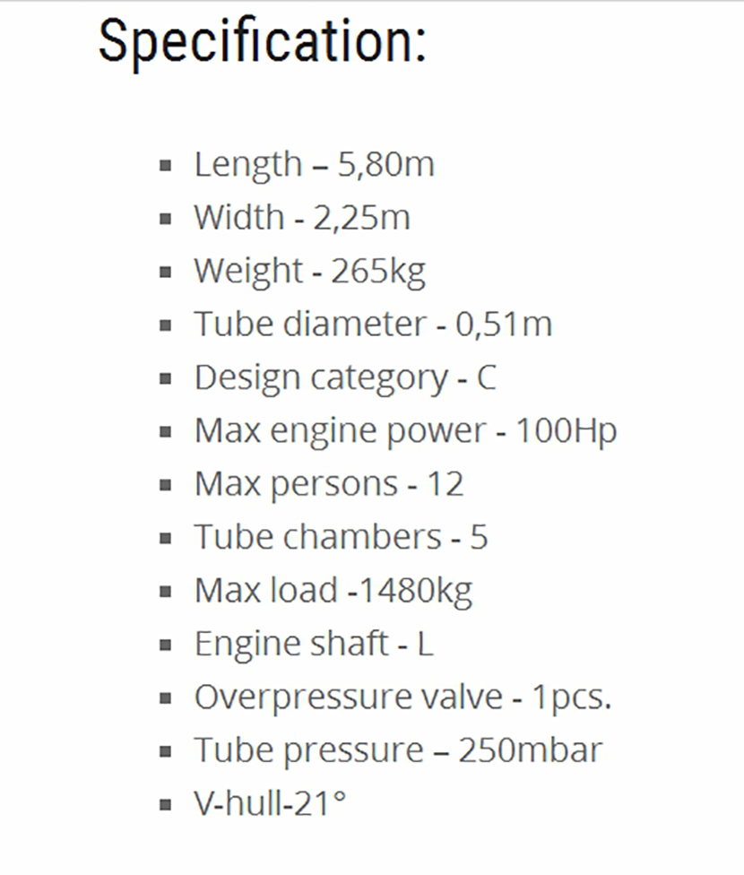 | 總長: | 5.80m | 最大乘員: | 12p |
