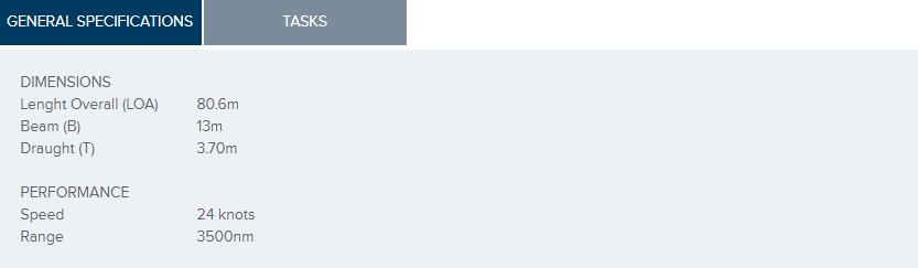 總長: 80.6m 航速: 24kn