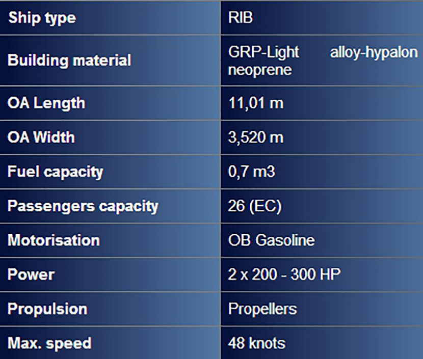 平臺 11.01米剛性船體充氣巡邏艇
