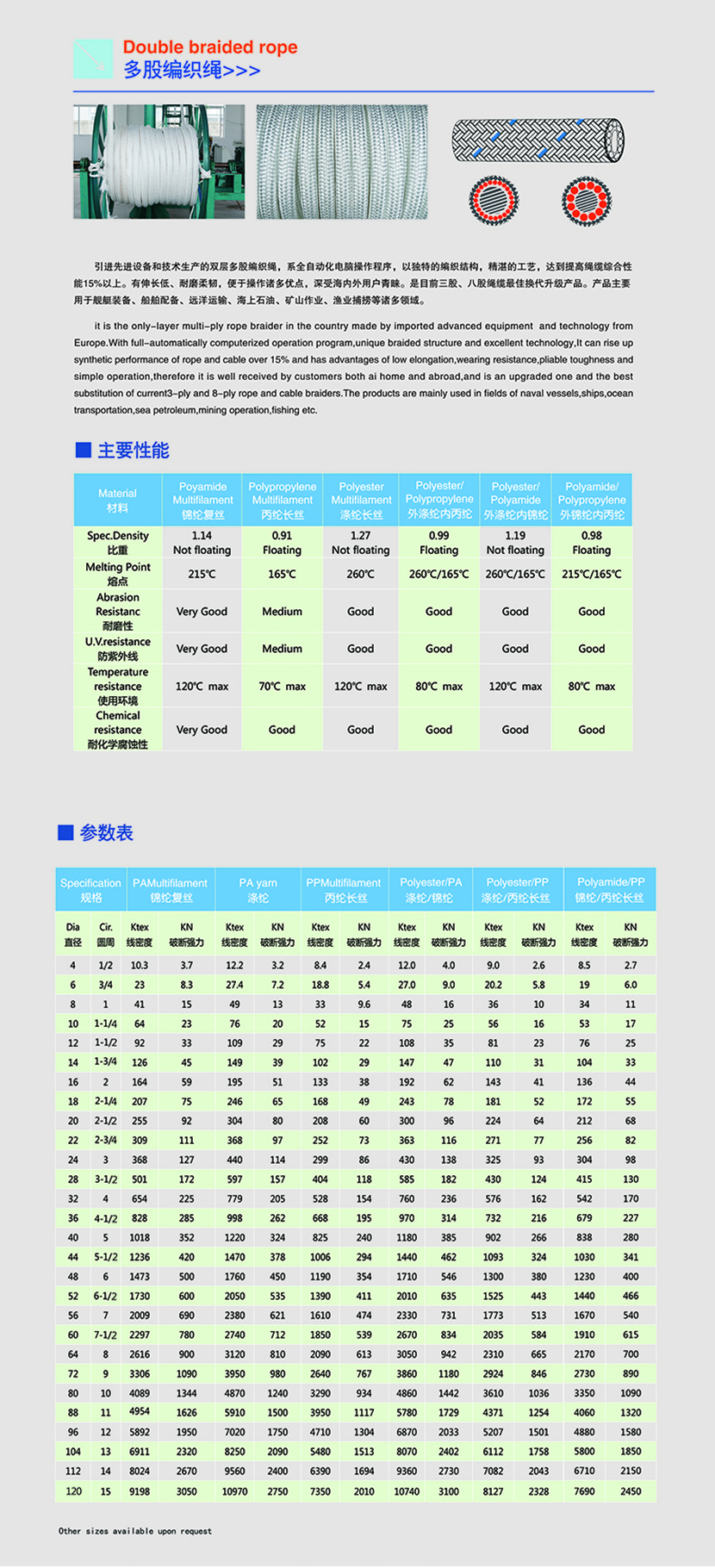 丙綸復絲雙層多股編織纜繩