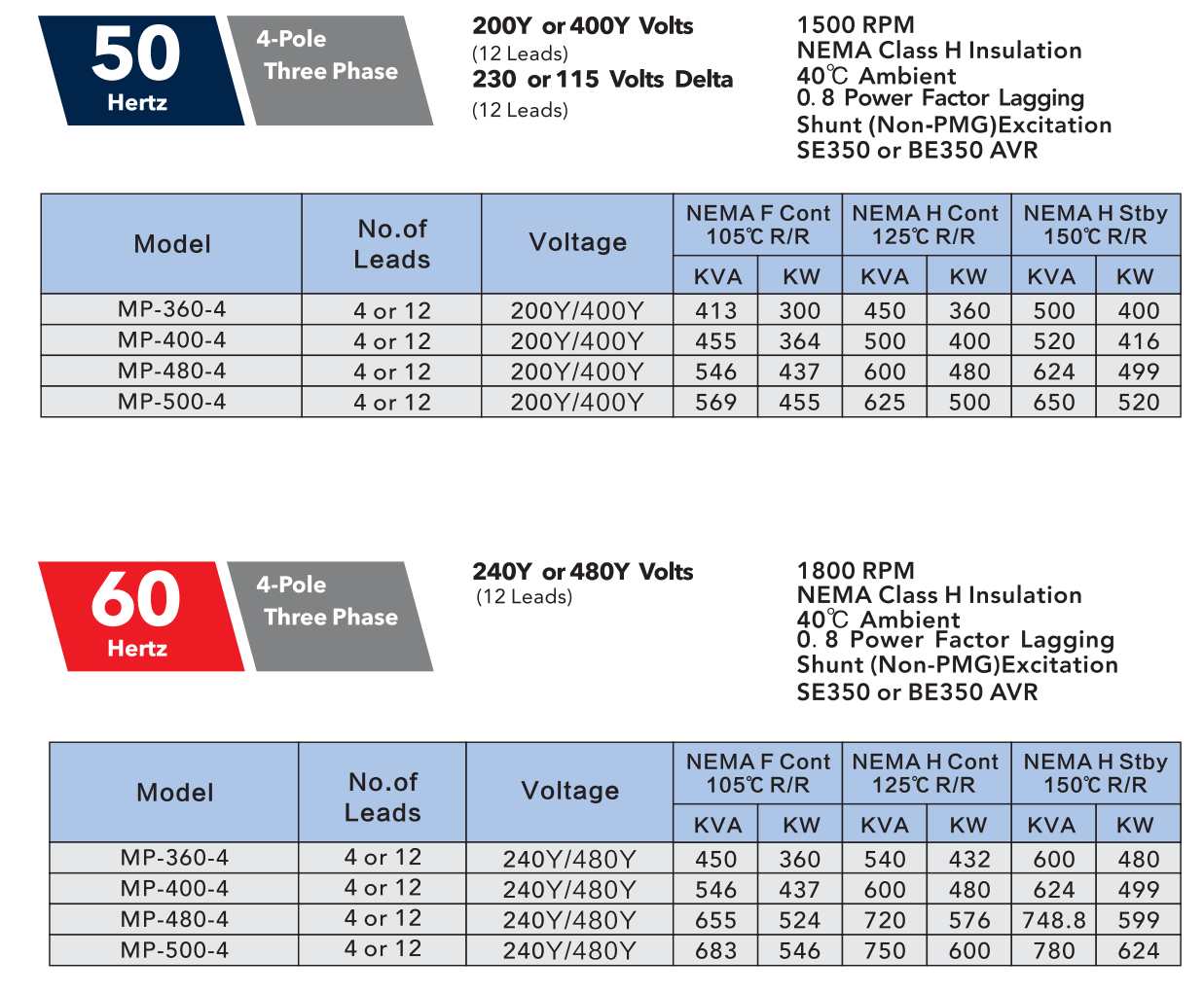 | MP500無刷同步交流發電機60HZ | |||