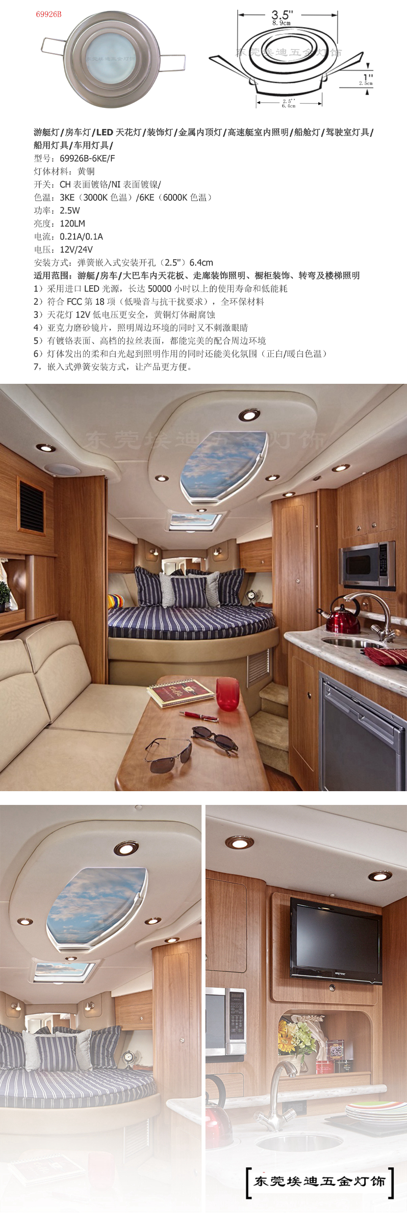 | 安裝方式: | 彈簧嵌入式安裝開(kāi)孔(2.5'')6.4cm | 亮度: | 120LM |
