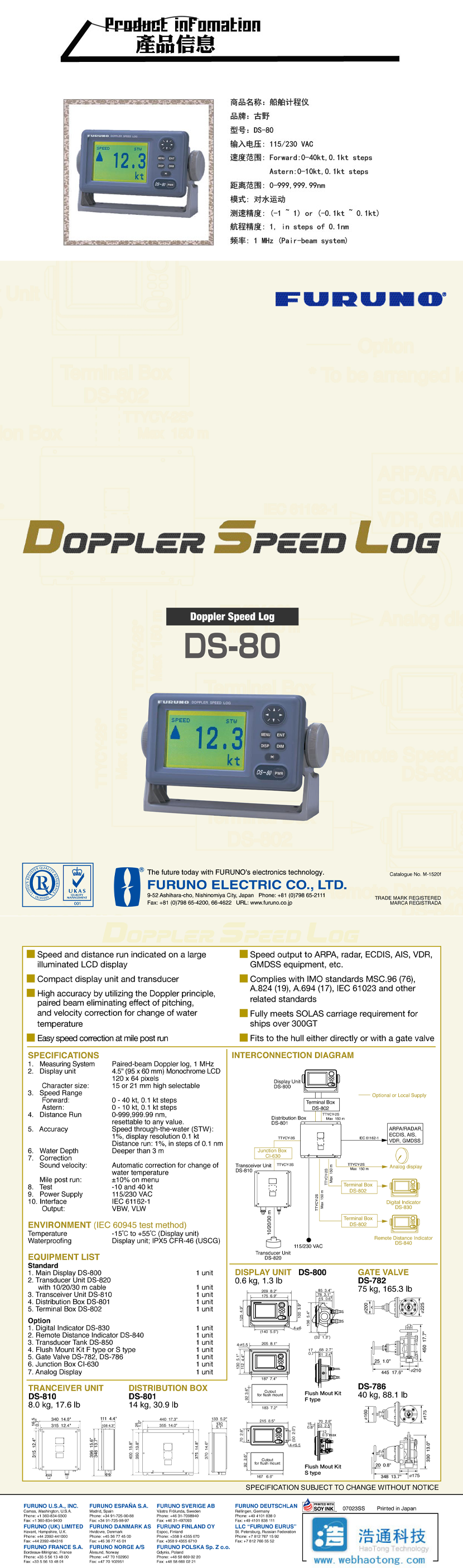 速度精度: (-1kn~1kn)或(-0.1kn~0.1kn) 電源: 115/230VAC