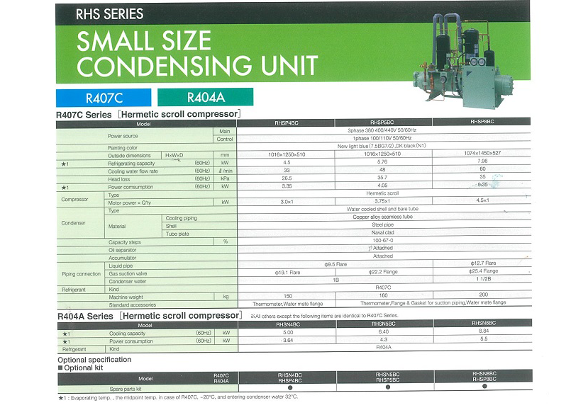 控制電路電源: 單相 100/110V 50Hz/60Hz 冷凝器型式: 水冷外殼與翅片管