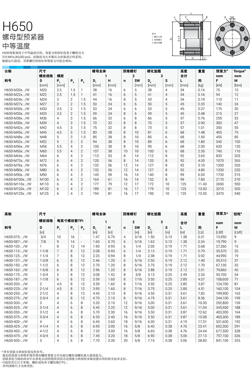 | 中等溫度螺母型預緊器 | |||