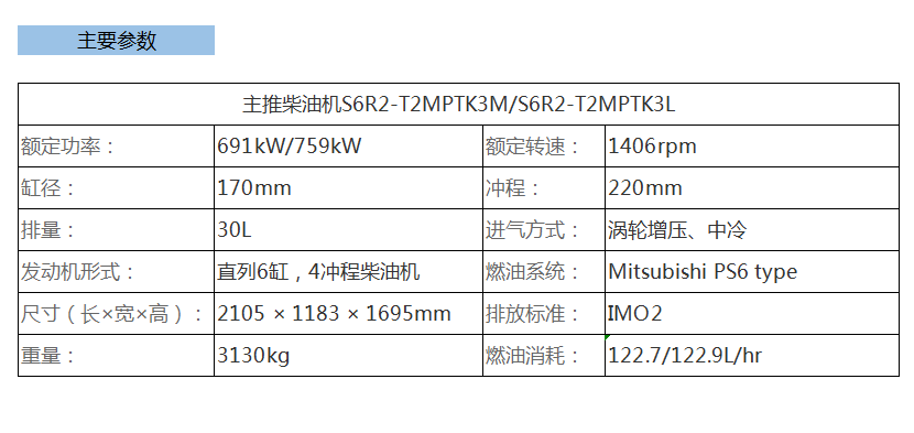 發動機形式: 直列6缸,4沖程柴油機 燃油系統: Mitsubishi PS6 type