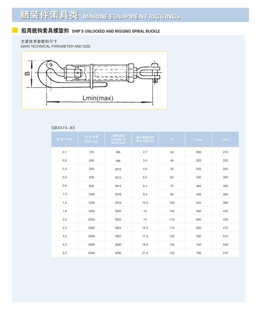 類型: 船用脫鉤索具螺旋扣