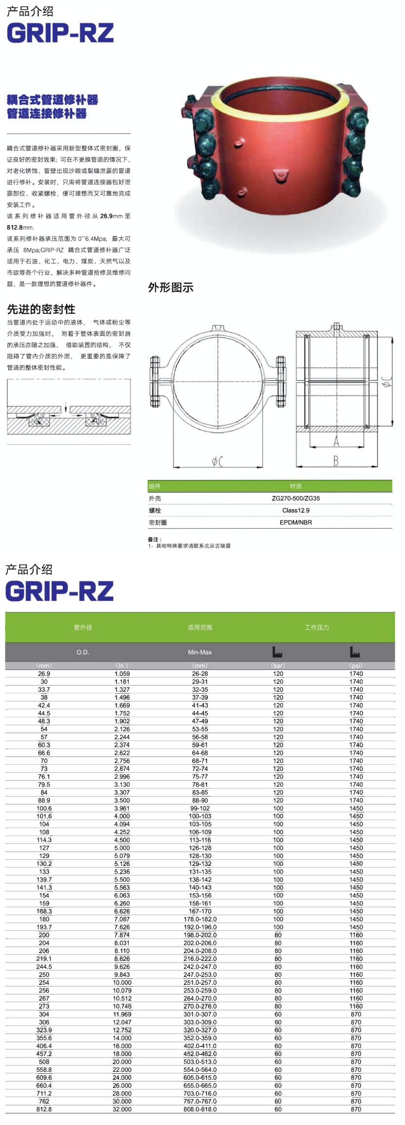 | 管道外徑: | 108mm | 適用范圍: | 106-109mm |
