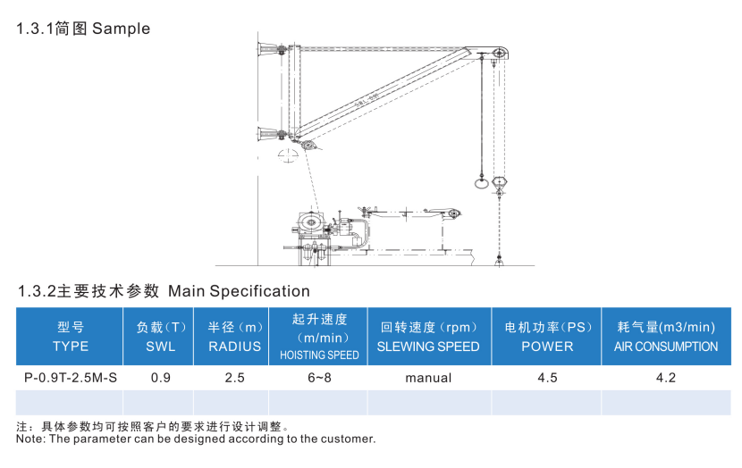 起升速度: 6~8m/min 回轉速度: manual