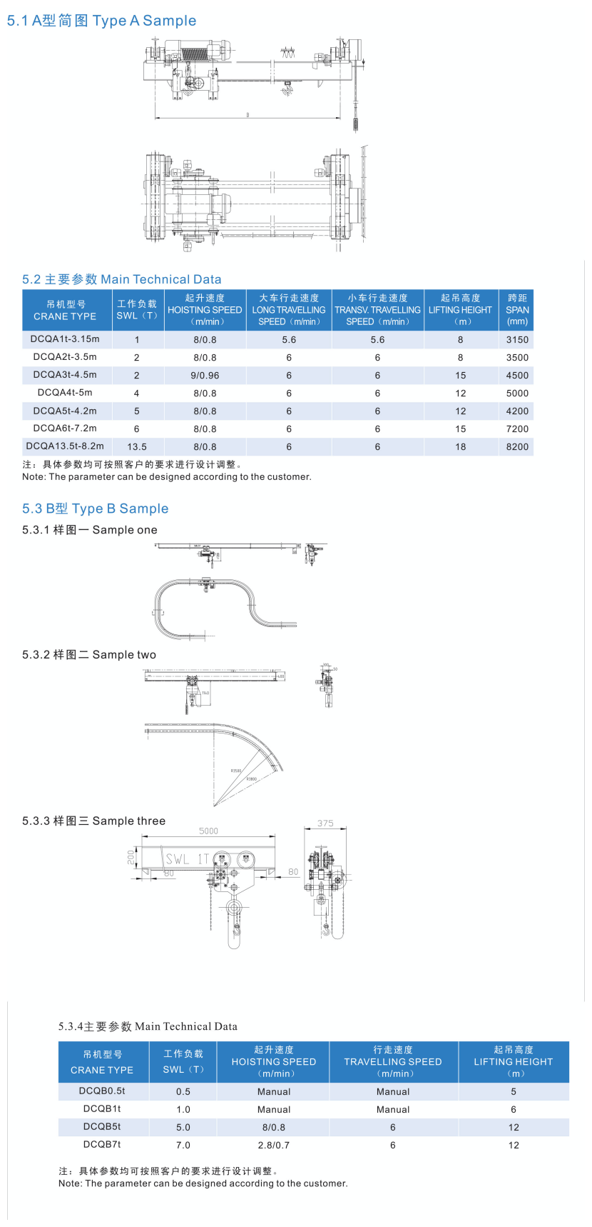 工作負載: 5T 起升速度: 0.8~8m/min